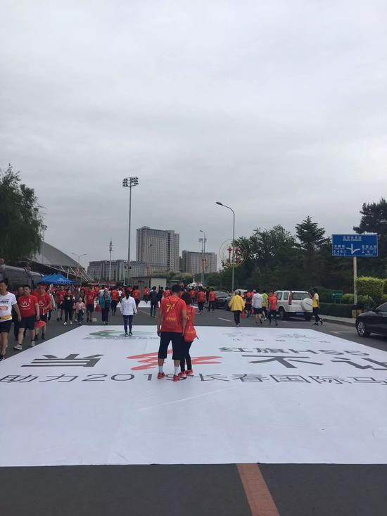 比赛当天早上,大量志愿者集结在东门做服务与引导。而从西边等方向进入的选手,就有点慌。既没有标识牌指引,也没有志愿者,空中与地面都没有指引标识,只能靠打听。